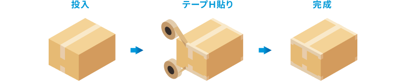 密封性が要求される梱包や重量物の梱包に。段ボールケース両サイドの上下4辺を封函することにより、ケース内への塵やホコリの侵入を防ぎます。
