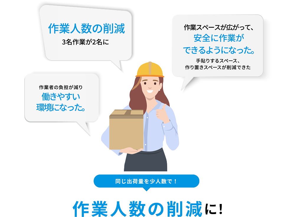 ・H貼りの手間の削減(特に箱が大きいから大変)が課題として挙がっていた。